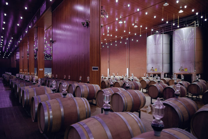??闽宁镇贺兰神酒庄酿酒车间的橡木桶。(永宁县委宣传部供图)