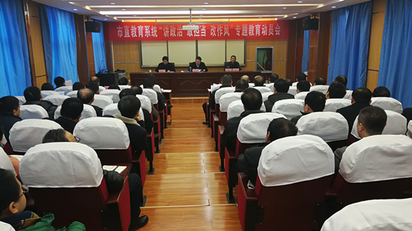 会上,市教育局党组成员、副局长刘巨广宣读了《中共榆林市教育局党组关于在市直教育系统县处级以上领导干部中开展“讲政治、敢担当、改作风”专题教育的实施方案》。市教育局党组书记、局长沈效功出席会议并作动员讲话。